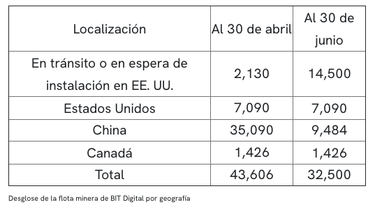 BIT Digital todavía tenía alrededor de 9 500 mineros de bitcoins dentro de China al 30 de junio. Pero dijo que espera completar la migración de su «flota restante con sede en China durante el tercer trimestre de 2021».