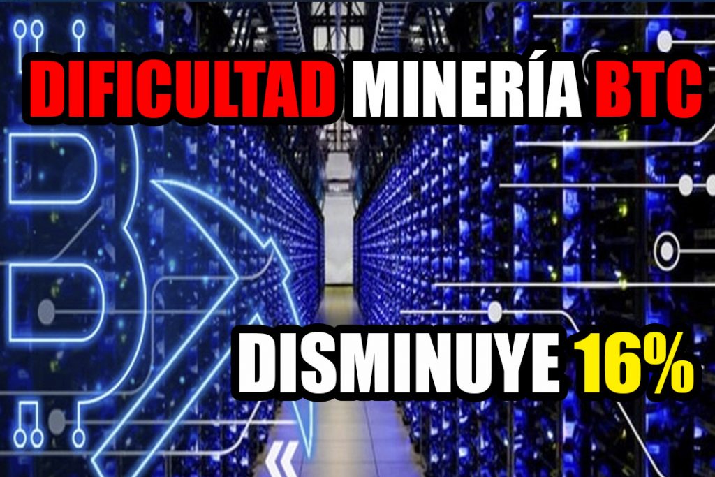 La dificultad de la minería de Bitcoin disminuye en un 16%