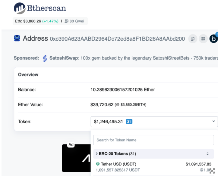 No está claro quién es el propietario de esta dirección, que contiene muchos otros tokens en los rangos bajos de cinco cifras que no ha transferido. Cuando se contactó con Tether, un portavoz de Tether se negó a compartir esos detalles para mantener la privacidad del propietario, pero dijo que Tether trabaja regularmente con reguladores y agencias de aplicación de la ley en todo el mundo, incluso en cualquier caso relacionado con piratería informática y estafas, para congelar direcciones.