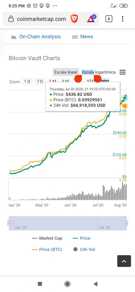 Bitcoin Vault (BTCV) catalogada como la moneda gemela de Bitcoin (BTC) apareció oficialmente en el mercado, el 21 de diciembre de 2019 con un valor inferior a 1$.